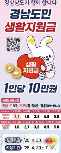 뉴스펀치 박세훈 기자 | 진주시가 고유가·고환율·고금리 3고(高)의 복합위기로 경제적 어려움을 겪고 있는 시민들을 위해 오는 30일부터 ‘경남도민 생활지원금’을 지급한다.