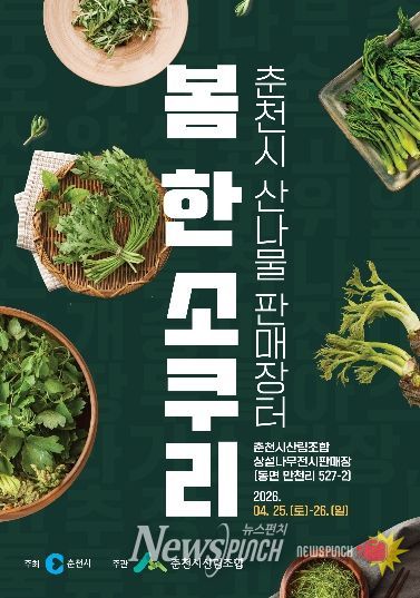 뉴스펀치 조평훈 기자 | 춘천시가 봄철 산나물 출하시기에 맞춰 지역 임산물 소비 촉진과 판로 확대에 나선다.