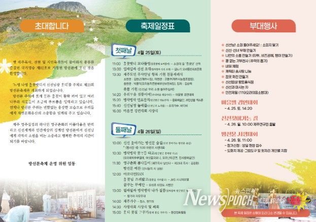 뉴스펀치 김용희 기자 | 제주시는 ‘제23회 방선문 축제’가 4월 25일부터 26일까지 오라동 방선문 일대에서 개최된다고 밝혔다.