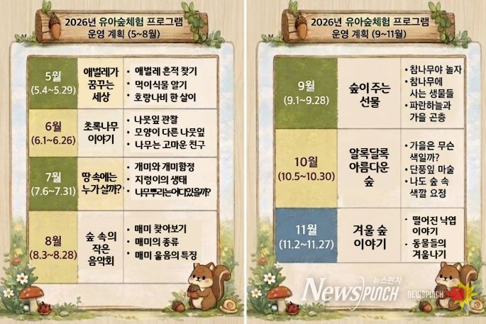 아울러 시는 올해 평일 단체 프로그램 외에도 가족 단위 시민이 참여할 수 있는 주말 프로그램을 새롭게 개설해 시범 운영할 예정이다. 이를 통해 아이들이 부모와 함께 숲에서 자연을 체험할 수 있는 기회를 확대해 나갈 계획이다.