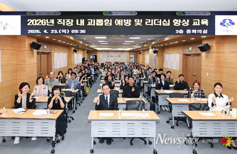 뉴스펀치 정홍균 기자 | 부평구는 23일 구청에서 지역 내 사회복지법인·시설·단체 등 기관장을 대상으로 ‘직장 내 괴롭힘 예방 및 리더십 향상 교육’을 실시했다고 밝혔다.
