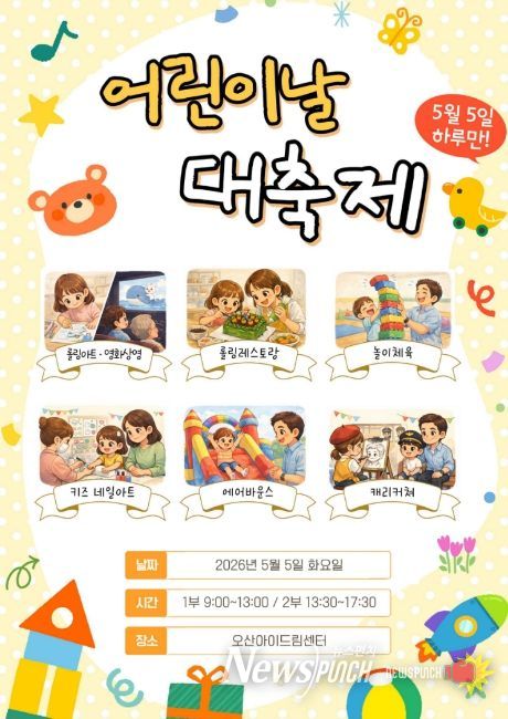 뉴스펀치 박상훈 기자 | 오산시가 운영하는 오산아이드림센터가 어린이날을 맞아 온 가족이 함께 즐길 수 있는 특별 체험행사를 마련한다.