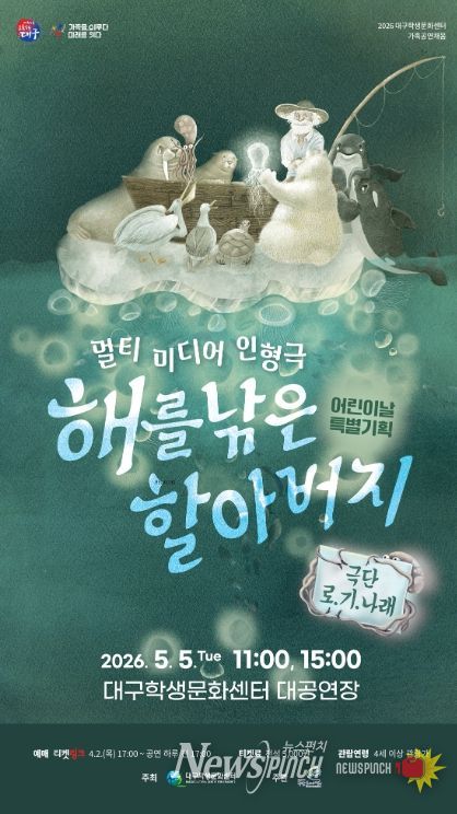 뉴스펀치 조평훈 기자 | 대구학생문화센터는 어린이날을 맞아 어린이와 가족 관객을 위한 특별 기획공연 '멀티미디어 인형극 해를 낚은 할아버지'를 오는 5월 5일 대공연장에서 선보인다.