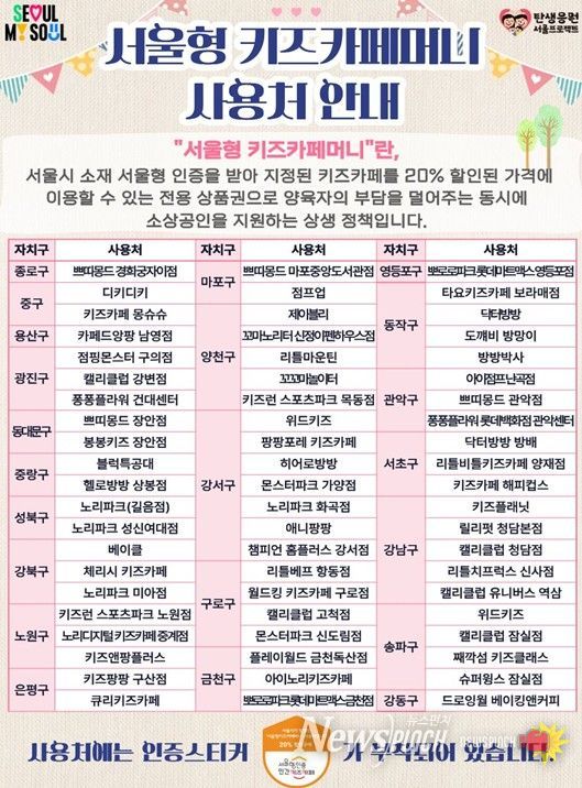 민간 키즈카페 이용 부담을 덜어주기 위한 ‘서울형 키즈카페머니’도 발행된다. 서울시는 4월 24일 오전 10시, 올해 2차분 15억 원을 특별 발행한다. ‘서울형 키즈카페머니’는 캘리클럽, 뽀로로파크 등 서울시내 62개 민간 인증 키즈카페에서 20% 할인된 금액으로 사용할 수 있으며, ‘서울페이+’ 앱을 통해 1인당 월 20만 원까지 구매 가능하다.