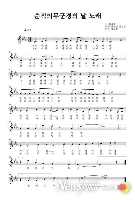 끝으로, 제1회 정부 기념행사를 개최하며 제작한 기념곡 ‘순직의무군경의 날 노래’를 가수 라포엠과 대학생연합합창단의 선도로 참석자 모두가 제창하며 기념식이 마무리된다.