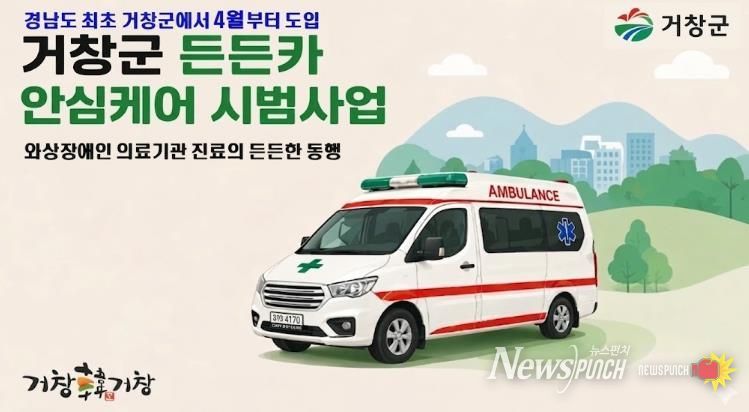 뉴스펀치 박세훈 기자 | 거창군은 경상남도 교통정책과 공모를 통해 지난 3월 11일에 선정된 ‘2026년 든든카(Car) 안심케어(Care) 시범사업’을 지역 내 교통약자 와상장애인의 의료기관 이동편의 개선을 위해 4월 24일부터 경상남도에서 최초로 도입한다고 밝혔다.