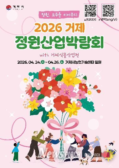 한편, '2026 거제 정원산업박람회 with 거제식물산업전'은‘정원, 모두를 이어주다’를 주제로 4월 24일부터 26일까지 3일간 농업기술센터 잔디광장 일원에서 정원전시, 산업전, 체험 프로그램 등 다양한 콘텐츠로 시민과 관광객을 맞이할 예정이다.