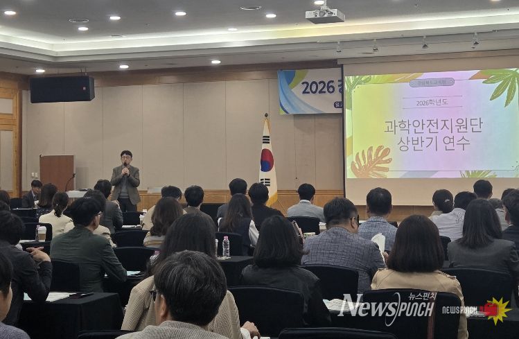 뉴스펀치 박세훈 기자 | 경북교육청은 23일 본청 행복지원동 연화관에서 경북교육청 과학안전지원단 105명을 대상으로 ‘2026년 과학안전지원단 상반기 연수’를 개최했다고 밝혔다.