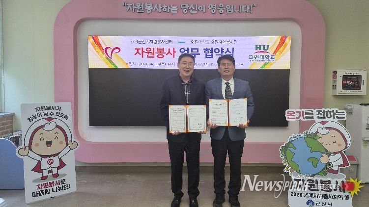 뉴스펀치 정홍균 기자 | (사)군산시자원봉사센터(이사장 황진)는 4월 23일 군산시자원봉사센터 세미나실에서 호원대학교 호원사회봉사단(단장 서충길)과 지역사회 연계 봉사활동 활성화를 위한 업무협약(MOU)을 체결했다.