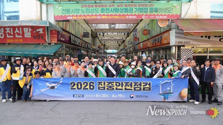 뉴스펀치 조평훈 기자 | 춘천시와 춘천소방서, 한국전기안전공사, 강원도시가스 등 관계기관이 23일 중앙시장 일원에서 ‘2026년 집중안전점검 및 안전점검의 날’ 합동 캠페인을 실시했다.