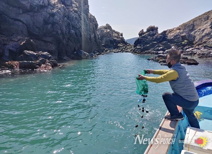 뉴스펀치 김용희 기자 | 신안군은 4월 24일 연안해역의 수산자원 회복과 어업인 소득증대를 위해 흑산면 다물도 외 4개 지선에 전복 17만 마리를 방류한다.