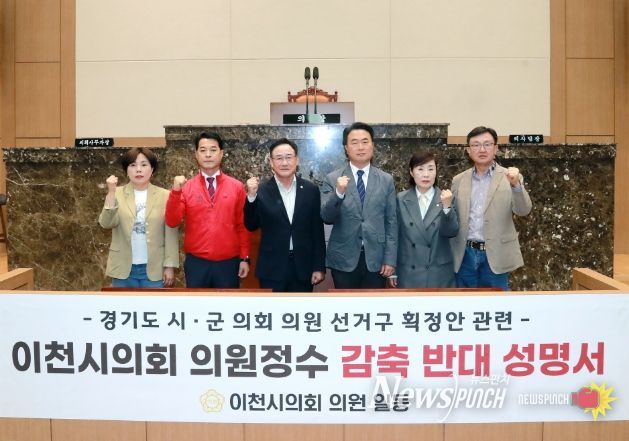 뉴스펀치 박상훈 기자 | 이천시의회 의원 일동은 23일 본회의장에서 “경기도 시·군의원 선거구획정안”과 관련해 이천시 의원 정수 감축에 반대하는 공식 입장을 밝혔다. 최근 경기도 시·군의원 선거구획정위원회가 경기도의회에 제출한 초안에는 이천시 의원정수를 기존보다 1명 축소하는 방안이 포함된 것으로 알려졌다.