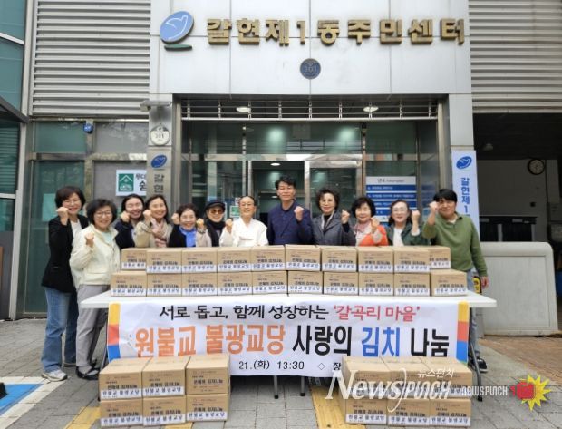 뉴스펀치 박상훈 기자 | 서울 은평구 갈현1동은 지난 21일 원불교 불광교당과 ‘사랑의 김치 나눔’ 전달식을 개최했다고 밝혔다.
