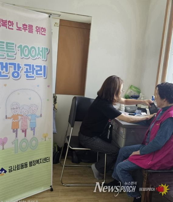 ‘튼튼100세’ 사업은 금사회동동 복지팀 간호직 공무원이 건강관리를 희망하는 경로당을 차례대로 방문해 △혈압·혈당 측정 등 기초 건강검사 △건강 상담 △만성질환 예방 관리 교육을 제공하는 사업이다.