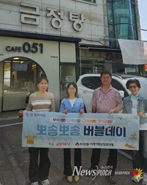 뉴스펀치 김윤걸 기자 | 부산 금정구 부곡3동은 지난 21일 금정사우나의 후원으로 관내 취약계층 어르신 20세대 대상 무료 목욕 서비스 ‘뽀송뽀송 버블데이’ 사업을 추진했다.