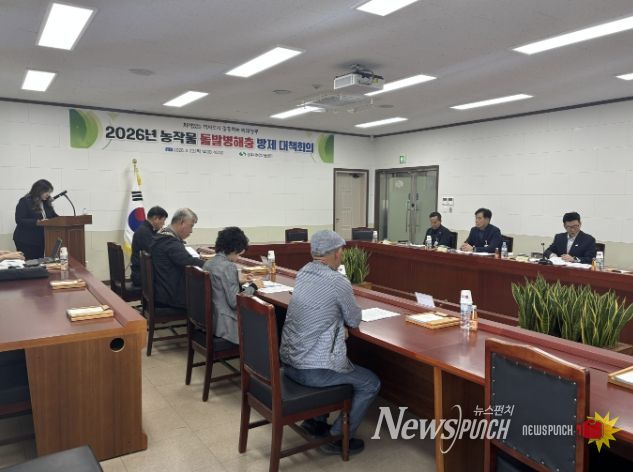 뉴스펀치 박세훈 기자 | 상주시농업기술센터는 4월 23일 농업기술센터 소회의실에서 2026년도 농작물 돌발병해충 방제 대책회의를 개최했다.