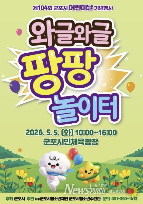 뉴스펀치 박상훈 기자 | 군포시는 제104회 어린이날을 맞아 오는 5월 5일 오전 10시부터 오후 4시까지 군포시민체육광장에서 ‘와글와글 팡팡 놀이터’를 주제로 어린이날 기념행사를 개최한다.