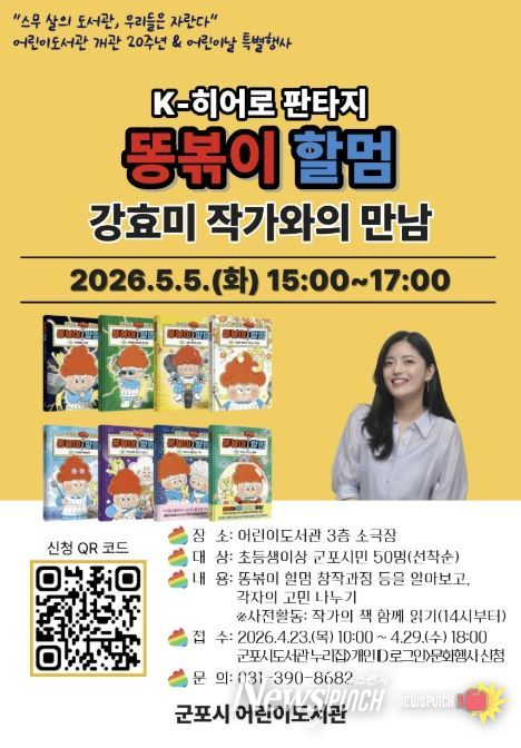 이번 행사는 “스무 살의 도서관, 우리들은 자란다”라는 주제로 2026년 5월 2일(토)부터 5월 20일(수)까지 진행되며, 군포시민 누구나 참여할 수 있다. 5월 3일(일)에는 고전동화를 줄인형으로 재해석한 가족 참여형 인형극 ‘빨간모자’가 상연되며, 5월 5일(화)에는 김선남 작가의 그림책 콘서트 ‘우리동네 나무가 건네는 노래’와 K-히어로 판타지 '똥볶이 할멈'강효미 작가와의 만남이 이어질 예정이다.