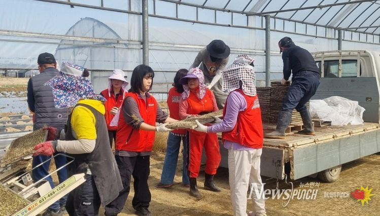 뉴스펀치 박상훈 기자 | 파주시 교하 연다산동은 지난 23일, 한국건강관리협회 서울서부지부 임직원 및 어머니봉사단의 '1사1촌 농번기 일손 나눔’의 일환으로 ‘모판 나르기 행사’를 성공적으로 진행했다.