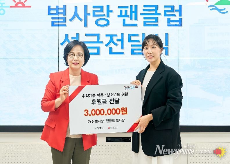 뉴스펀치 박상훈 기자 | 서울 강동구는 지난 17일 가수 별사랑과 팬클럽 ‘별사탕’ 관계자 등이 참석한 가운데 '가수 별사랑 팬클럽 성금 전달식'을 개최했다고 24일 밝혔다.