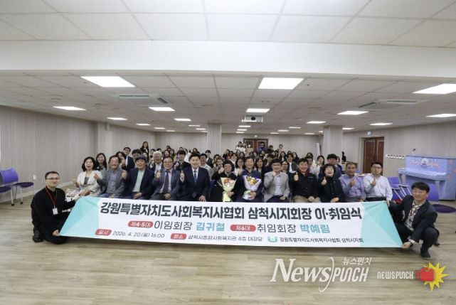 뉴스펀치 조평훈 기자 | 강원특별자치도사회복지사협회 삼척시지회는 4월 20일 오후 4시, 삼척시종합사회복지관에서 제5·6대 지회장 이취임식을 개최했다.