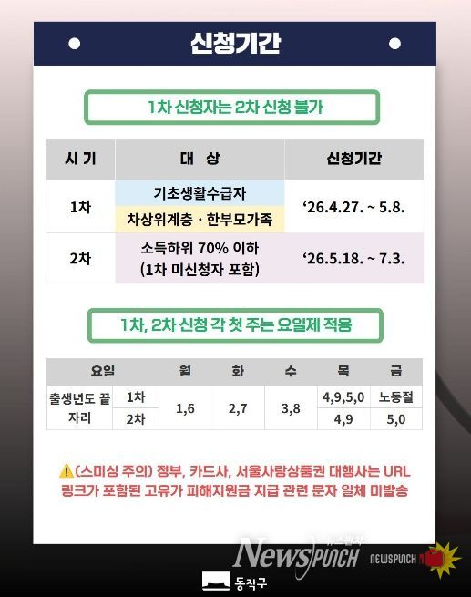뉴스펀치 박상훈 기자 | 동작구가 고유가·고환율·고물가로 인한 주민들의 경제적 부담을 완화하기 위해 고유가 피해지원금, 에너지 바우처 등 민생 안정 대책을 추진한다고 밝혔다.