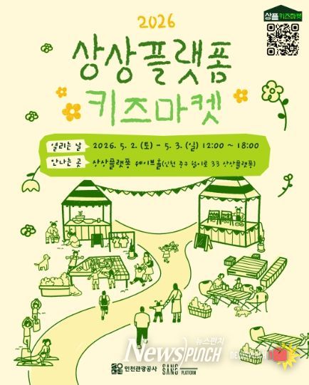 뉴스펀치 정홍균 기자 | 인천관광공사는 오는 5월 2일부터 3일까지 이틀간, 상상플랫폼 웨이브홀에서 “2026 상상플랫폼 키즈마켓”을 개최한다고 밝혔다.