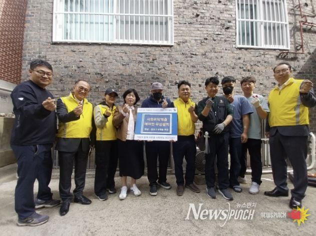 뉴스펀치 박상훈 기자 | 지난 23일 수원시 권선구 호매실동 지역사회보장협의체는 업무협약을 맺은 수원남부로타리 클럽과 주거환경개선 특화사업의 일환으로, 반지하 빌라에 거주하는 취약계층 어르신 댁에 에어컨을 설치했다.