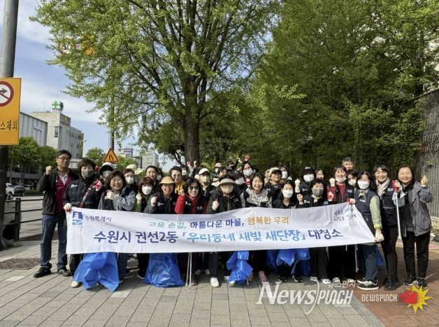 뉴스펀치 박상훈 기자 | 수원시 권선구 권선2동 행정복지센터는 지난 22일 관내 단체 및 지역주민과 함께 '우리 동네 새빛 새 단장' 대청소를 추진했다고고 밝혔다.
