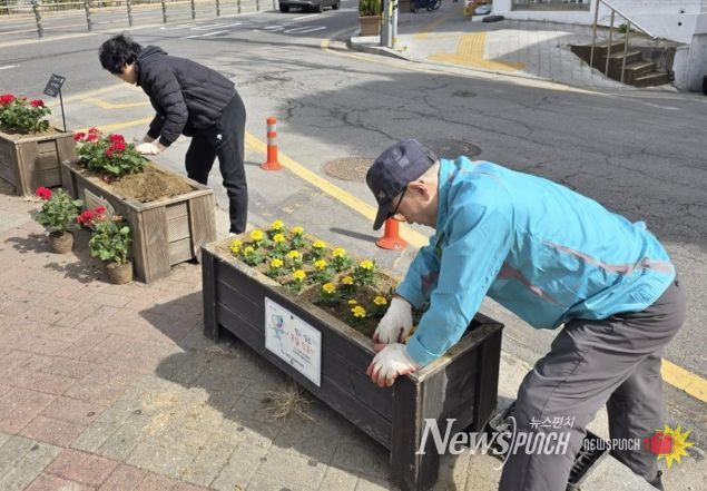 이번 활동은 통장협의회를 중심으로 주민들이 직접 참여하고 주도한 환경정비로, 관내에 설치된 크고 작은 화분 약 40여 개에 다양한 봄꽃을 식재하고 주변 환경을 함께 정비하며 마을 곳곳에 화사한 봄기운을 더했다.