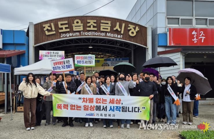 뉴스펀치 김용희 기자 | 진도군은 지난 22일 진도읍 오일장이 열리는 조금시장에서 일상에서의 차별과 편견을 줄이기 위해 ‘차별 없는 세상, 폭력 없는 일상에서 시작됩니다’를 표어로 폭력 예방 운동(캠페인)을 진행했다.