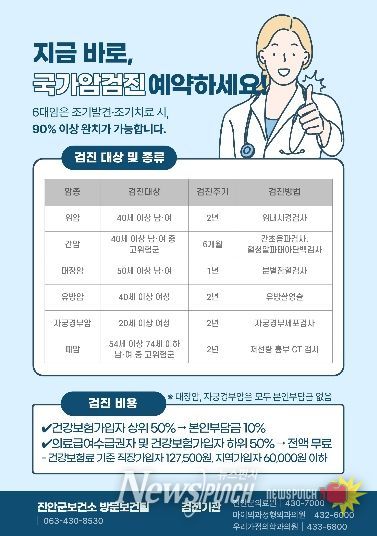 진안군 내 검진 가능 의료기관은 진안군의료원, 마이외과정형외과의원, 우리가정의학과의원 등 3곳이다. 군 보건소는 연말로 갈수록 검진 수요가 집중되는 점을 고려해, 가급적 상반기 내 검진을 받을 것을 권장하고 있다.