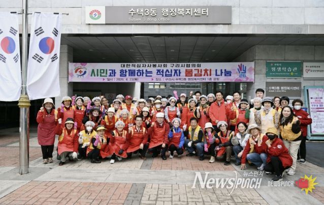 뉴스펀치 박상훈 기자 | 대한적십자사봉사회 구리시협의회는 지난 23일 수택3동 행정복지센터 1층 광장에서 '2026년 시민과 함께하는 적십자 봄김치 나눔’행사를 실시했다고 밝혔다.