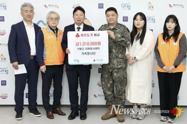 뉴스펀치 박상훈 기자 | 가평군 자원봉사센터 가족봉사단은 23일 가평군청 군수실에서 이웃돕기 성금 기탁 전달식을 가졌다. 이날 행사에는 서태원 가평군수를 비롯해 연기복 가족봉사단 회장, 이명열 가평군 자원봉사센터장 등이 참석했다.