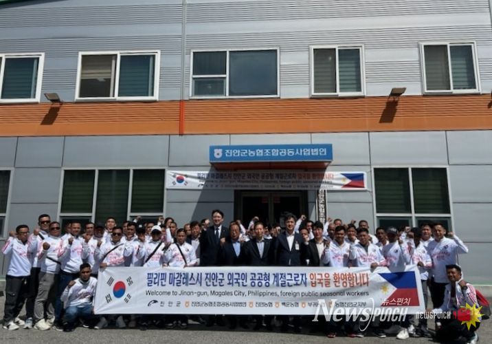 뉴스펀치 정홍균 기자 | 진안군은 24일 업무협약(MOU) 체결국인 필리핀에서 공공형 외국인 계절근로자 54명이 입국했다고 밝혔다.