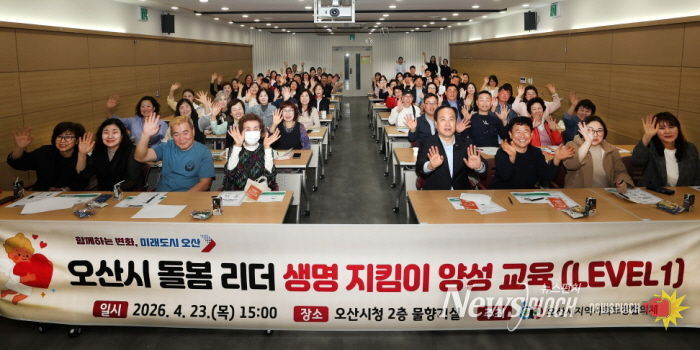 뉴스펀치 박상훈 기자 | 오산시는 지난 23일 오후 3시 시청 물향기실에서 오산시지역사회보장협의체 위원 60여 명을 대상으로 ‘2026년 오산시 지역리더 생명지킴이 교육’을 실시했다고 밝혔다.