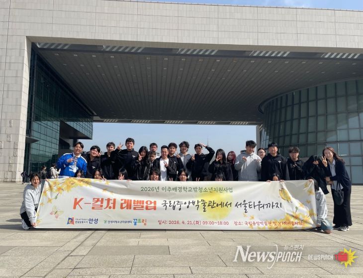 뉴스펀치 박상훈 기자 | 안성시학교밖청소년지원센터는 지난 21일, 관내 이주배경 학교 밖 청소년 30명을 대상으로 한국 문화에 대한 친밀감을 높이고 사회 적응을 돕기 위한 ‘K-컬처 레벨업: 박물관부터 타워까지’ 프로그램을 진행했다고 밝혔다.