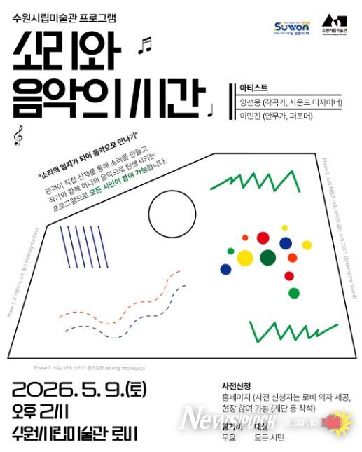 뉴스펀치 박상훈 기자 | 경기도 수원시립미술관은 을 맞아 소리를 주제로 한 음악 프로그램 '소리와 음악의 시간'을 5월 9일 개최하며 참여자를 모집한다.