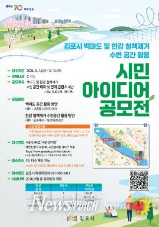 뉴스펀치 박상훈 기자 | 김포시가 한강 철책 제거 부지와 백마도 등 천혜의 수변 자원을 시민들의 쉼터와 문화 공간으로 탈바꿈하기 위해 ‘시민 아이디어 공모전’을 개최한다고 밝혔다. 이번 공모전은 ‘김포시 백마도 및 한강 철책 제거 수변 공간 활용’을 주제로, 시민들의 창의적이고 실효성 있는 아이디어를 발굴해 시정 운영에 적극 반영하기 위해 마련됐다.