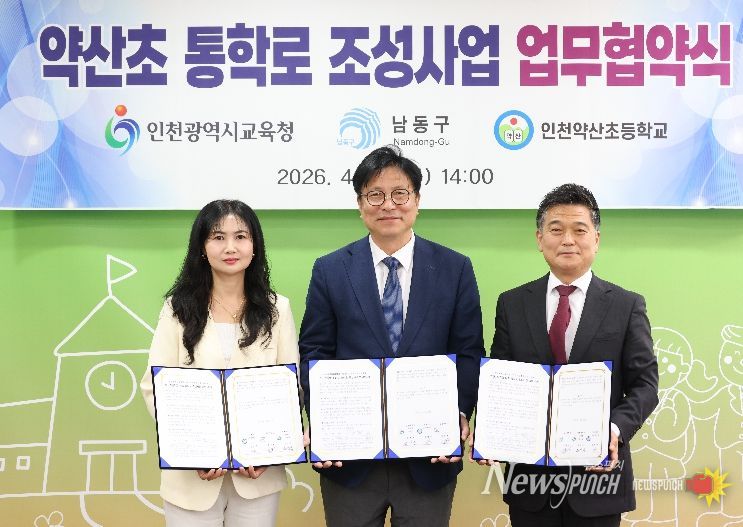 뉴스펀치 정홍균 기자 | 인천시 남동구는 24일 인천시교육청, 인천 약산초등학교와 ‘약산초등학교 통학로 조성사업’을 위한 업무협약을 체결했다.
