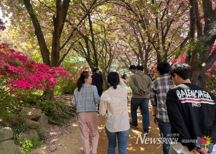 뉴스펀치 정홍균 기자 | 봄철을 맞아 전주시 완산공원 꽃동산에 겹벚꽃과 철쭉 등이 만개하면서 시민과 관광객에게 봄나들이 장소로 제공되고 있다.