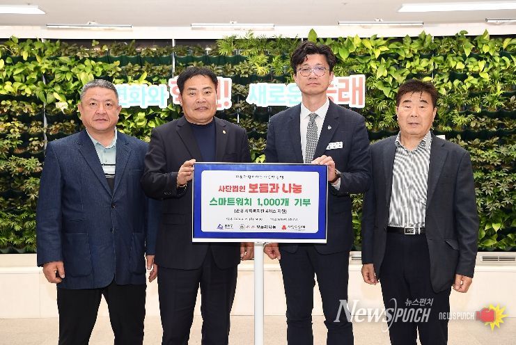 뉴스펀치 김윤걸 기자 | 부산 동래구는 지난 23일 사단법인 보듬과나눔(이사장 지상협)으로부터 어르신 건강 관리를 위한 스마트워치 1,000개를 기탁받아 관내 사회복지시설에 전달했다고 밝혔다.