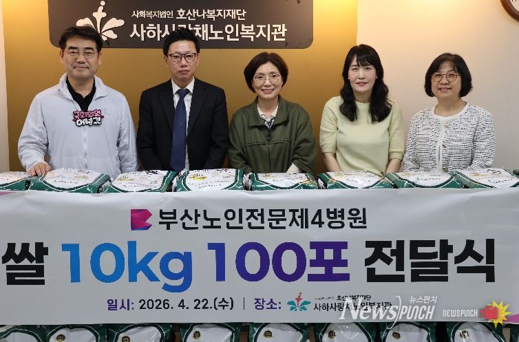 뉴스펀치 김윤걸 기자 | 부산 사하구는 지난 22일 부산노인전문제4병원(대표이사 류정건)이 어려운 이웃을 위해 쌀 1,000kg을 기탁했다고 밝혔다.