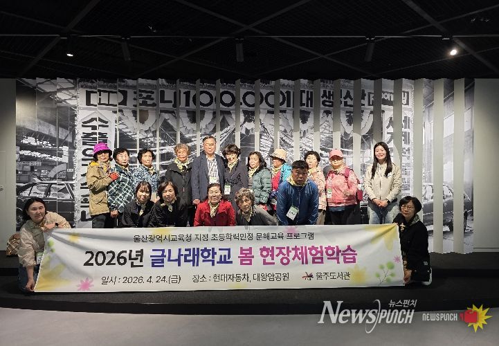 뉴스펀치 김윤걸 기자 | 울산 울주도서관(관장 최종길)은 24일 현대자동차 울산공장과 대왕암공원에서 초등 학력 인정 문해교육 ‘글나래학교’ 학습자 20여 명을 대상으로 봄맞이 현장 체험학습을 진행했다.