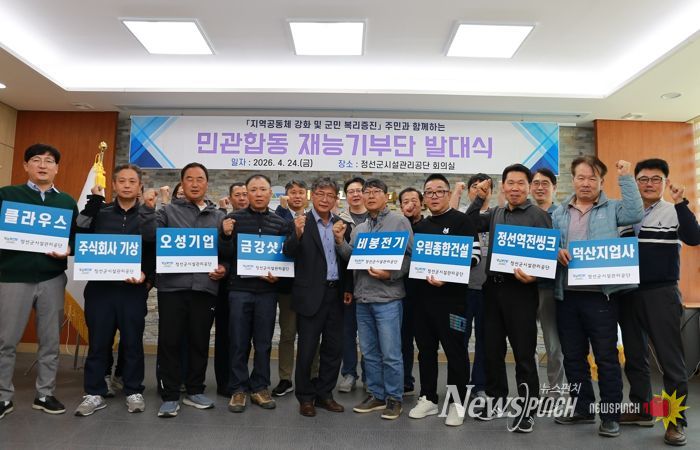 뉴스펀치 조평훈 기자 | 정선군시설관리공단은 지역사회 나눔문화 확산과 군민 삶의 질 향상을 위해 '2026년 민관합동 재능기부단 발대식'을 4월 24일 공단 청사 2층 회의실에서 개최했다고 밝혔다.