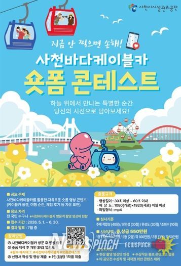 뉴스펀치 박세훈 기자 | 사천시시설관리공단은 사천바다케이블카의 매력을 널리 알리고 방문객 참여형 콘텐츠를 발굴하기 위해 ‘사천바다케이블카 숏폼 콘테스트’를 개최한다고 26일 밝혔다.