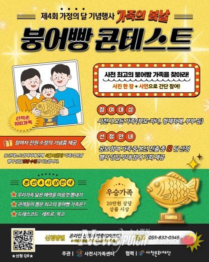 이번 행사는 가족 간 유대감 강화와 건강한 가족문화 조성을 위해 마련된 시민 참여형 행사로, 사천시가족센터가 주관하고 사천문화재단이 협력해 추진된다.