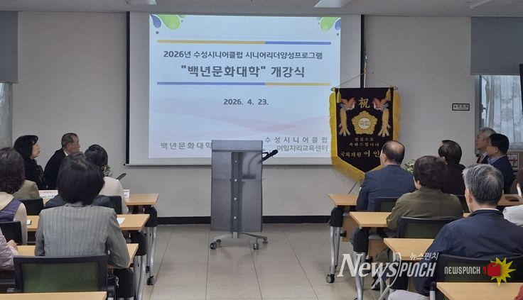 뉴스펀치 조평훈 기자 | 대구 수성시니어클럽이 운영하는 ‘백년문화대학’ 개강식이 지난 23일 백년문화대학 회원 등 80여 명이 참석한 가운데 수성시니어일자리교육센터에서 개최됐다.