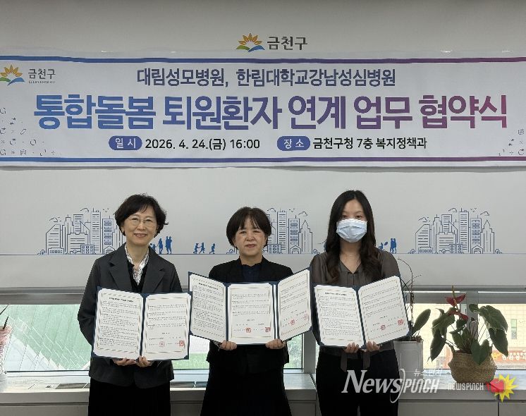 뉴스펀치 박상훈 기자 | 금천구는 지난 24일 대림성모병원, 한림대학교강남성심병원 등 2개소와 통합돌봄 퇴원환자 지역사회 연계를 위한 업무협약을 체결했다고 밝혔다.