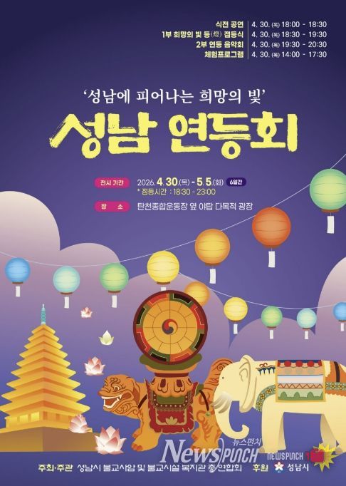 뉴스펀치 박상훈 기자 | ‘2026 성남 연등회’가 오는 4월 30일부터 5월 5일까지 엿새간 분당 탄천 야탑 다목적광장(탄천종합운동장 앞)에서 열린다.